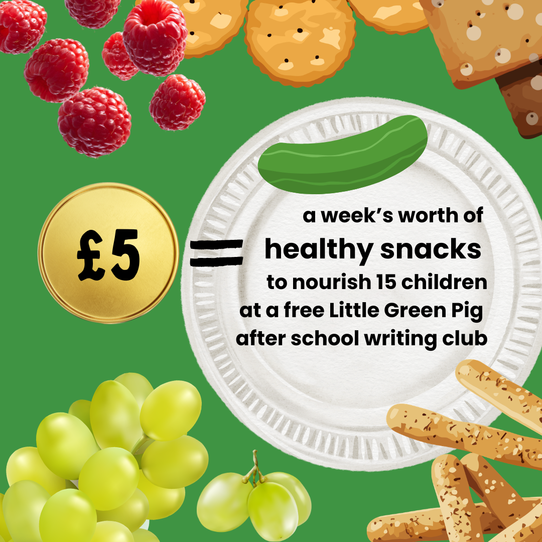 £5 = a week’s worth of healthy snacks to nourish 15 children at a free after school writing club