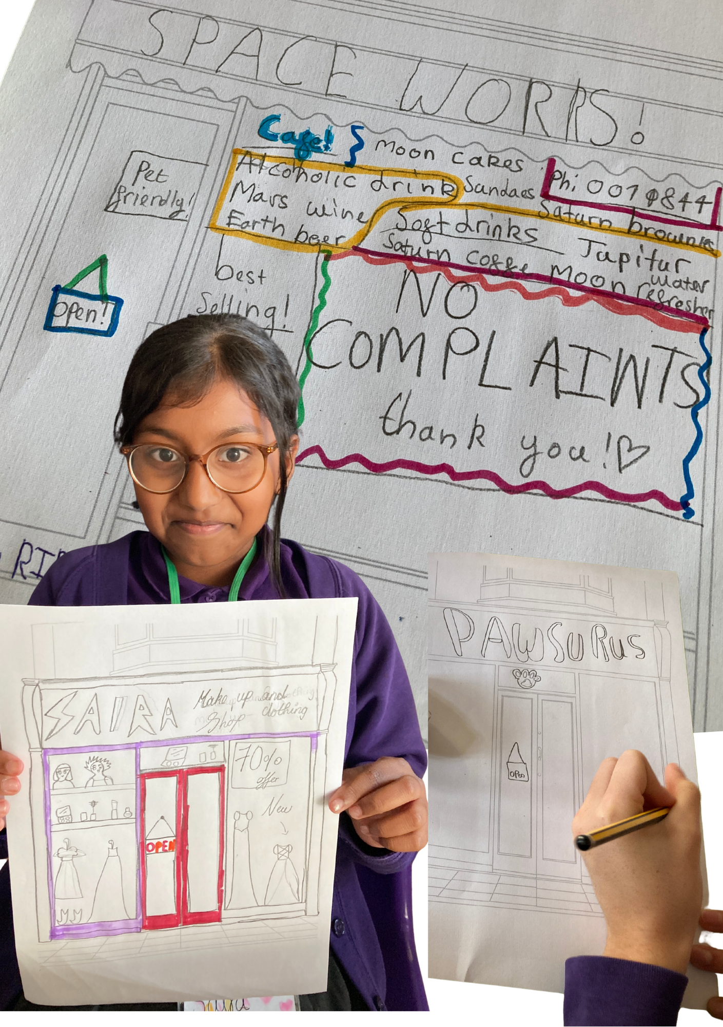 Did you know that on Eastbourne's Seaside Road parade of shops you can find such delights and wonders as shops with reptiles, model trains and an Afro-Carribean hair shop? Our Eastbourne After School Club writers took inspiration from visiting these unique independent shops local to Leaf Hall. The term was then spent imagining and inventing their own quirky shops selling everything from tuxedos for snails to magic pottery, to simply - everything!